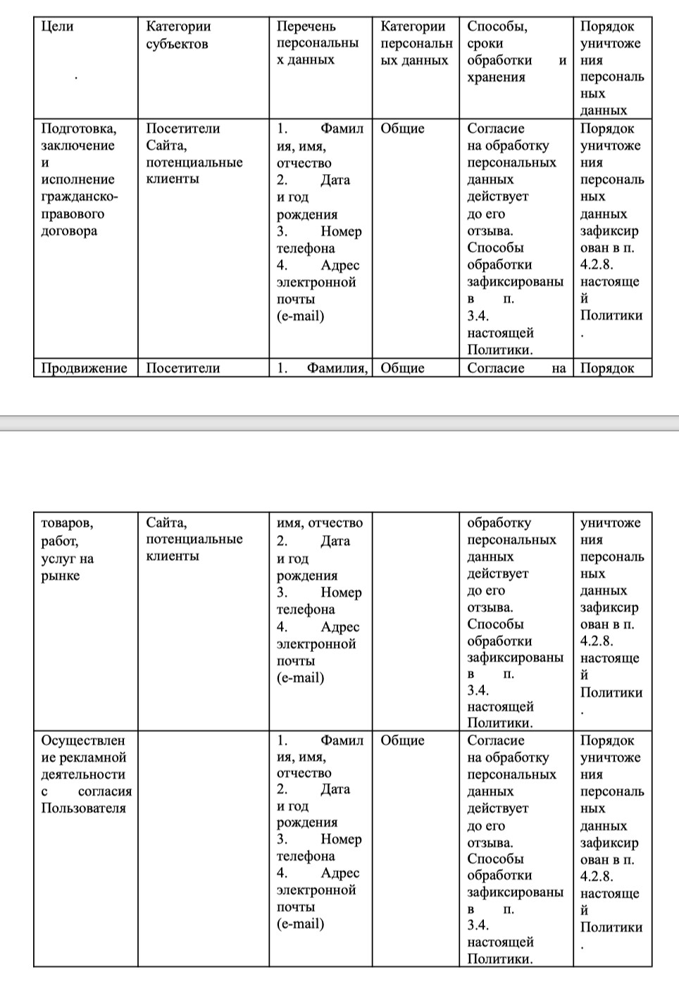 1.2.2. Обработка персональных данных должна ограничиваться достижением конкретных, заранее определенных в п. 2.2. настоящей Политики, и законных целей. Не допускается обработка персональных данных, несовместимая с целями сбора персональных данных.